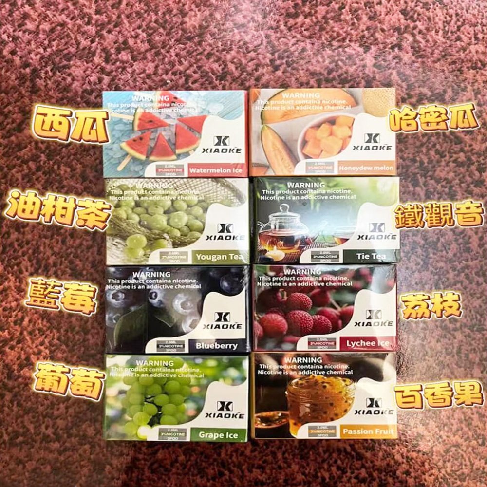油柑(一盒3顆), 哈密瓜(一盒3顆), 南極冰(一盒3顆), 可樂(一盒3顆), 酷爽鳳梨(一盒3顆), 薄荷(一盒3顆), 芭樂星冰(一盒3顆), 沙士啤酒(一盒3顆), 荔枝(一盒3顆), 元氣蜜桃(一盒3顆), 冰西柚(一盒3顆), 冰西瓜(一盒3顆), 鐵觀音(一盒3顆), 茉莉葡萄(一盒3顆), 百香果(一盒3顆), 葡萄(一盒3顆), 綠豆(一盒3顆), 黑加侖藍莓(一盒3顆), 超柔煙草(一盒3顆), 夏日森林(一盒3顆), 海鹽檸檬(一盒3顆), 青芒(一盒3顆), 龍井(一盒3顆), 奇異果莫吉托(一盒3顆), 冰搖鮮果(一盒3顆), 冰冰草莓(一盒3顆), 主機黑色, 主機白色, 主機紫羅蘭, 主機玫瑰金, 主機天青藍