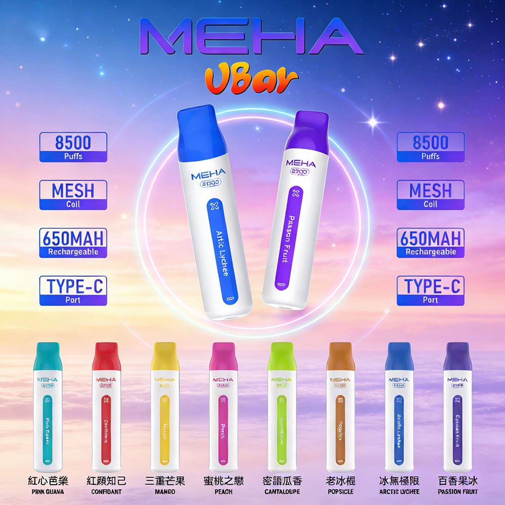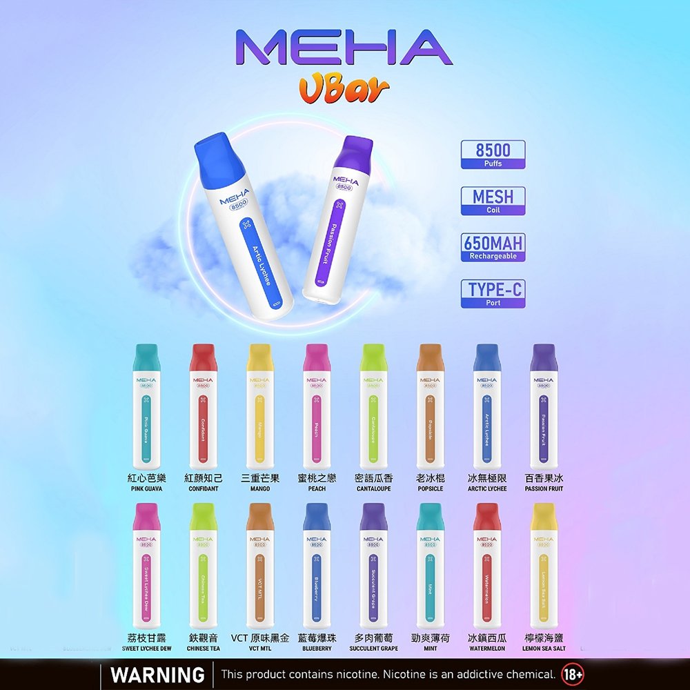 < img height="1" width="1" style="display:none" src="https://www.facebook.com/tr?id=641530305674067&ev=PageView&noscript=1" /> 【台灣現貨】MEHA魅嗨VBAR小白條 8500口 一次性大容量拋棄式 - 臺灣電子煙商店