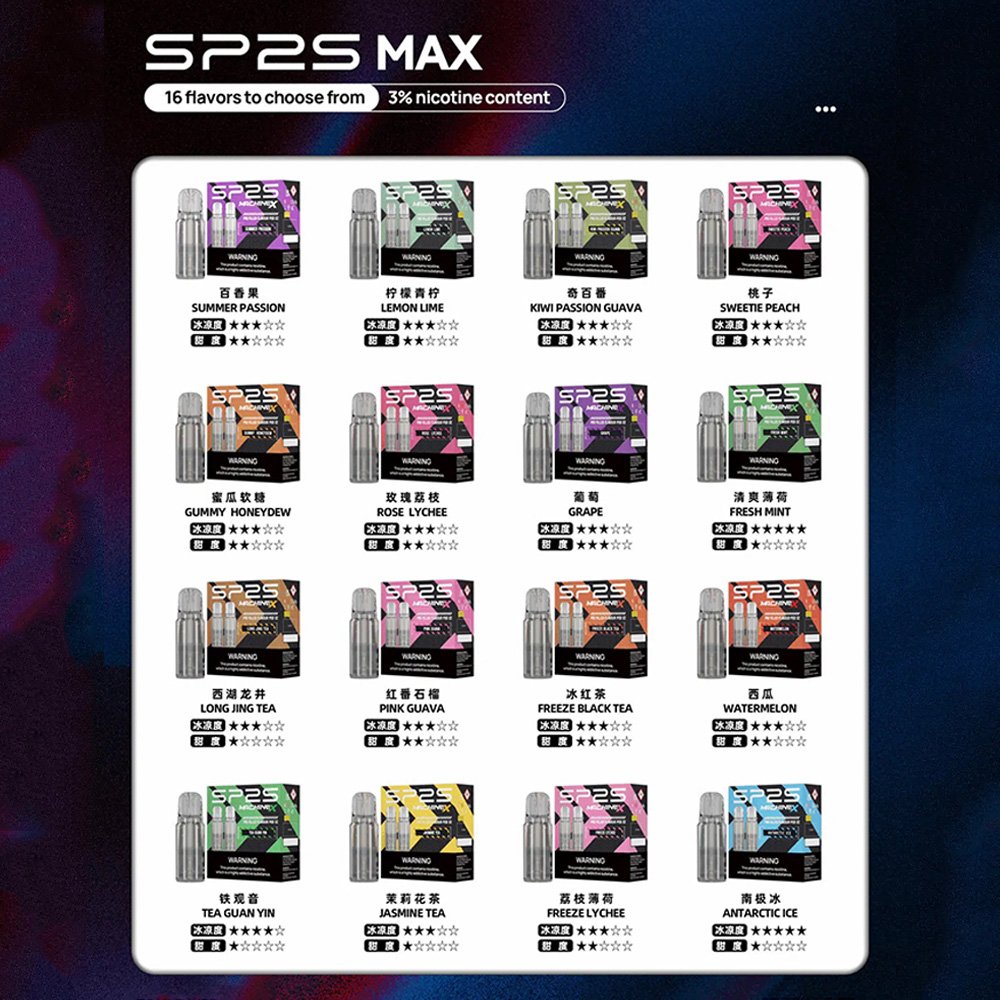 SP2S MAX 方塊主機 是 SP2S 品牌全新推出的高顏值換彈式電子煙設備,以機械工業風為設計靈感,結合八款潮流撞色外觀,為追求個性與品味的用戶提供更多選擇。
